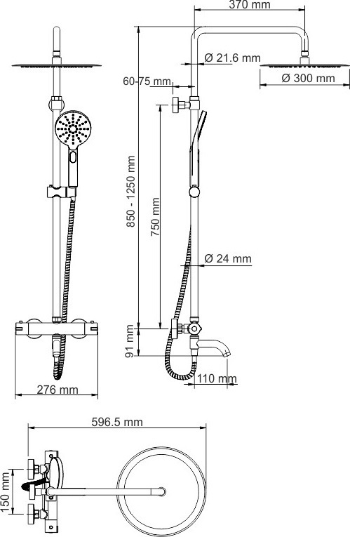 - Стойка для душа, Ø 22 мм регулируемая по высоте