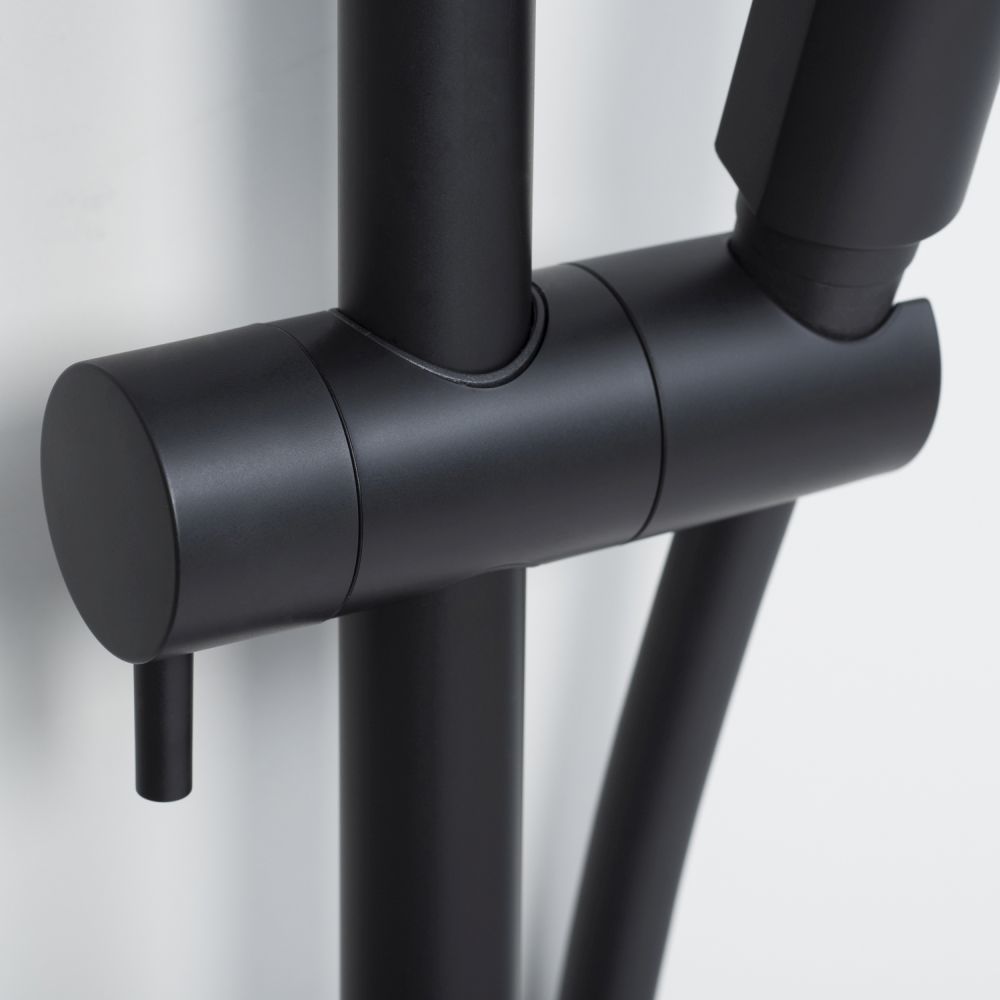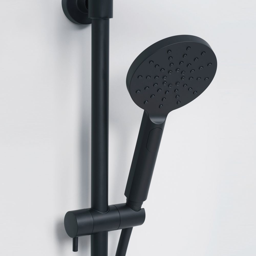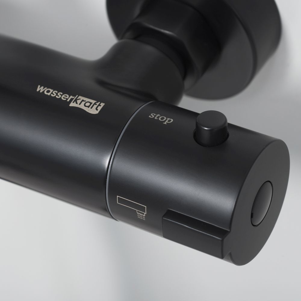 Душевая система для ванны с термостатом и выдвижным изливом WasserKraft Thermo A28801, материал - латунь, цвет - черный Soft-touch.