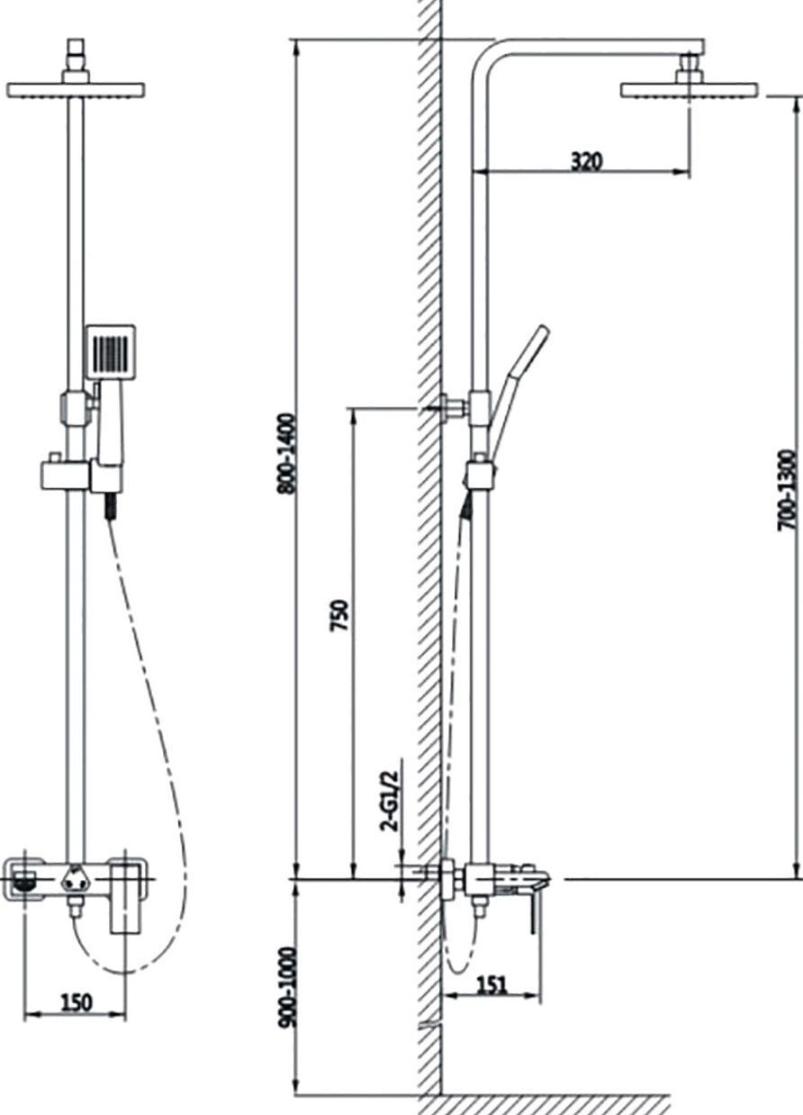 - Штанга душевой системы регулируется по высоте