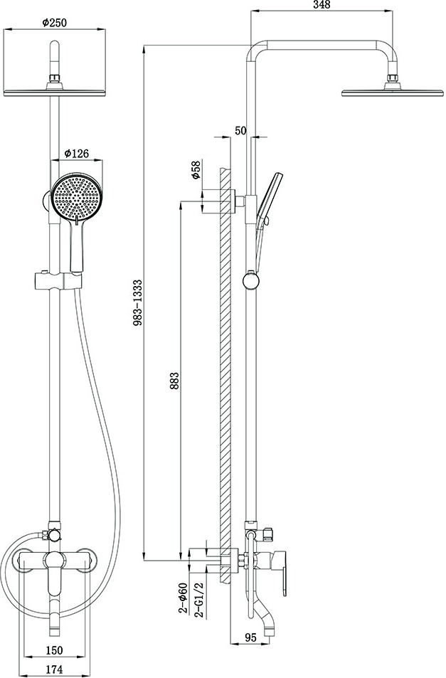 - верхний душ ,