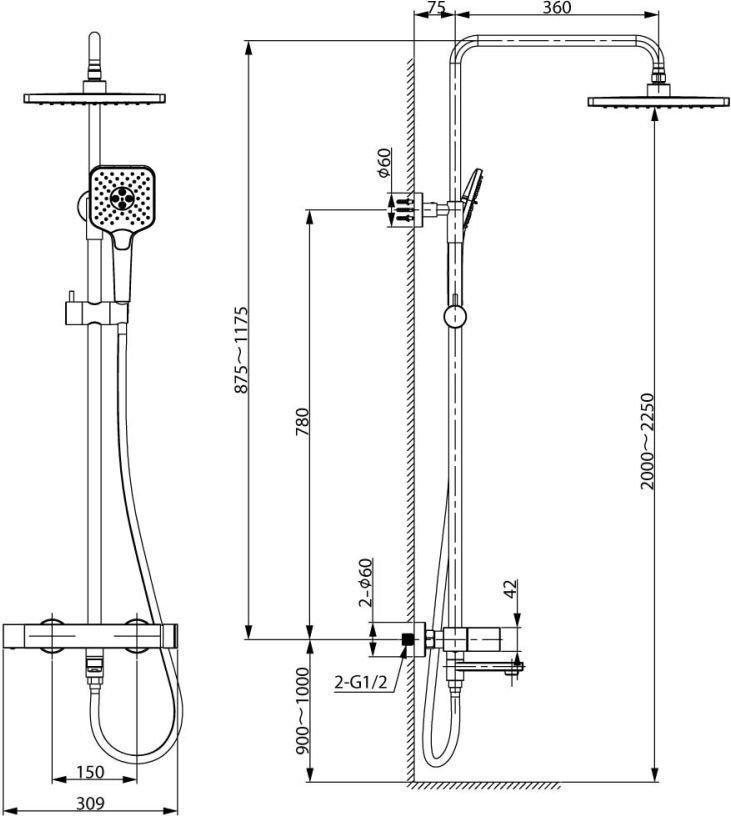 - верхний душ ,