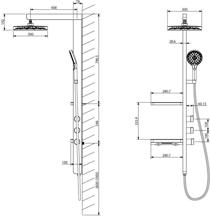 Характеристики душевая система с изливом Vincea (VSFS-3I11GM)
