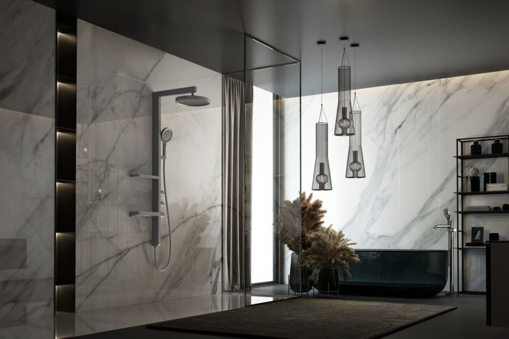 Душевая стойка Vincea Inspire VSFS-3I11GM, материал - латунь, цвет - вороненая сталь.
