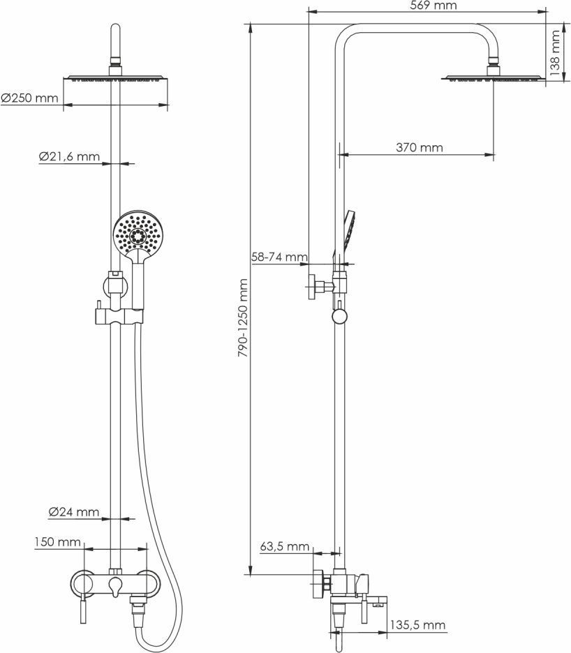 - Стойка для душа, Ø 24 мм регулируемая по высоте