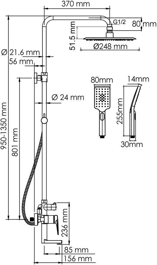 - Стойка для душа, Ø 24 мм регулируемая по высоте