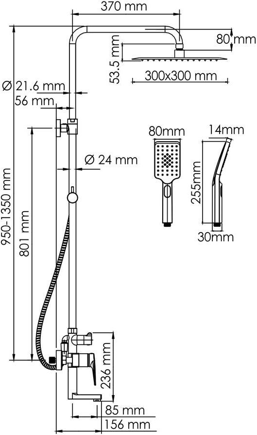 - Стойка для душа, Ø 24 мм регулируемая по высоте