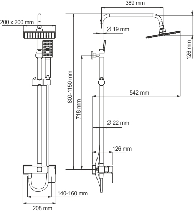 - Стойка для душа, Ø 22 мм регулируемая по высоте