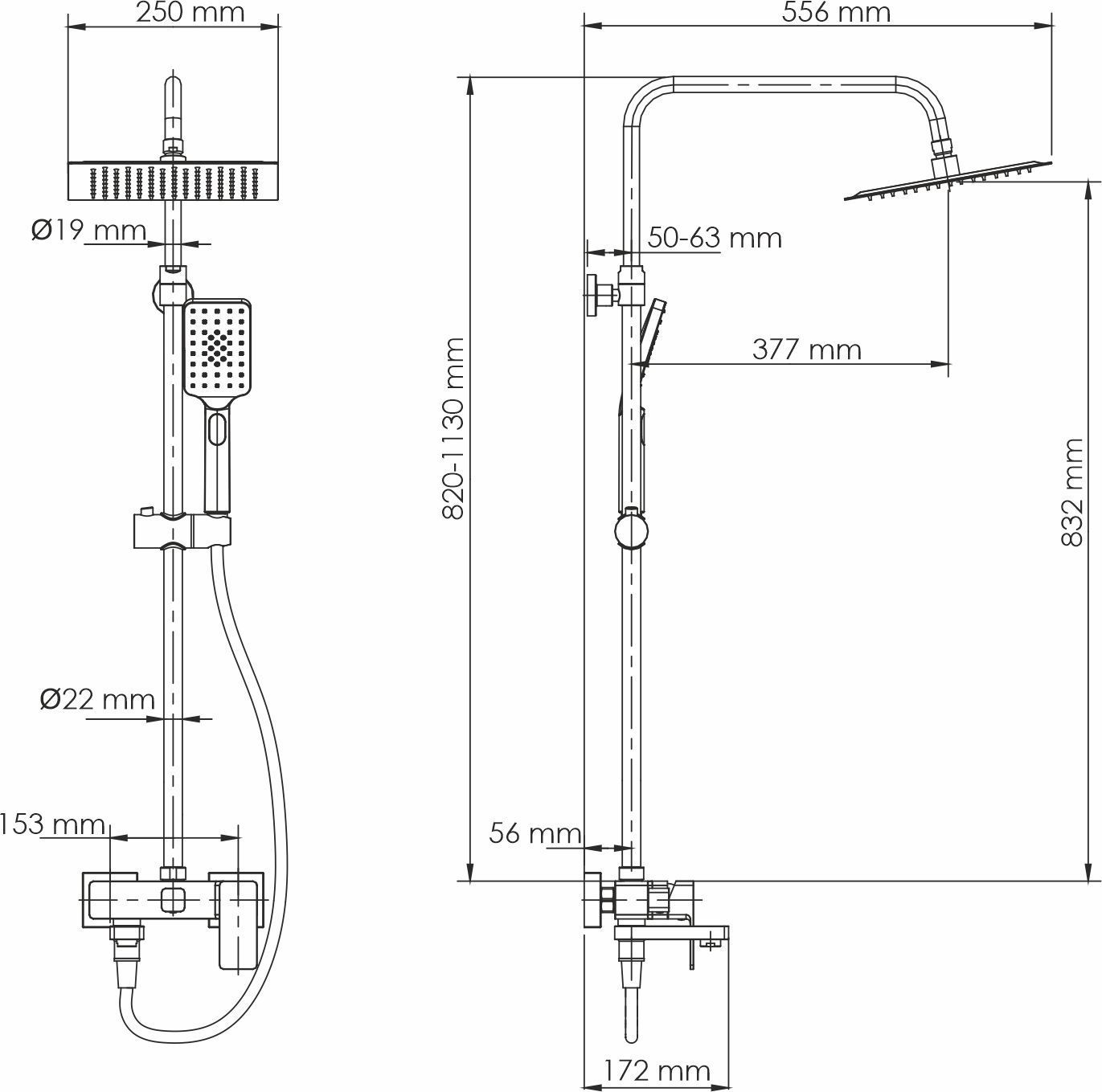 - Стойка для душа, Ø 22 мм регулируемая по высоте