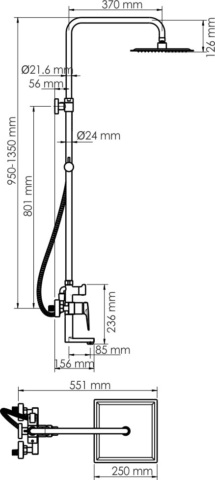 - Стойка для душа, Ø 24 мм регулируемая по высоте
