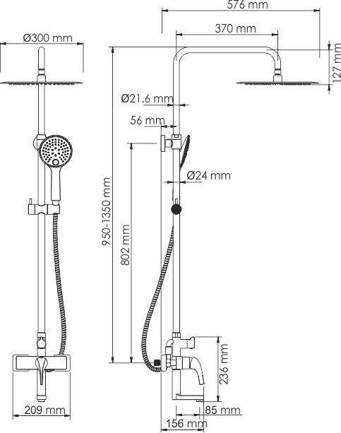- Стойка для душа, Ø 24 мм регулируемая по высоте