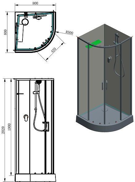 Душевое кабина Aquanet Passion EVO R с низким поддоном и сифоном, размер 800х800х2020 мм, профиль чёрный, стекло прозрачное, безсиликоновая сборка.