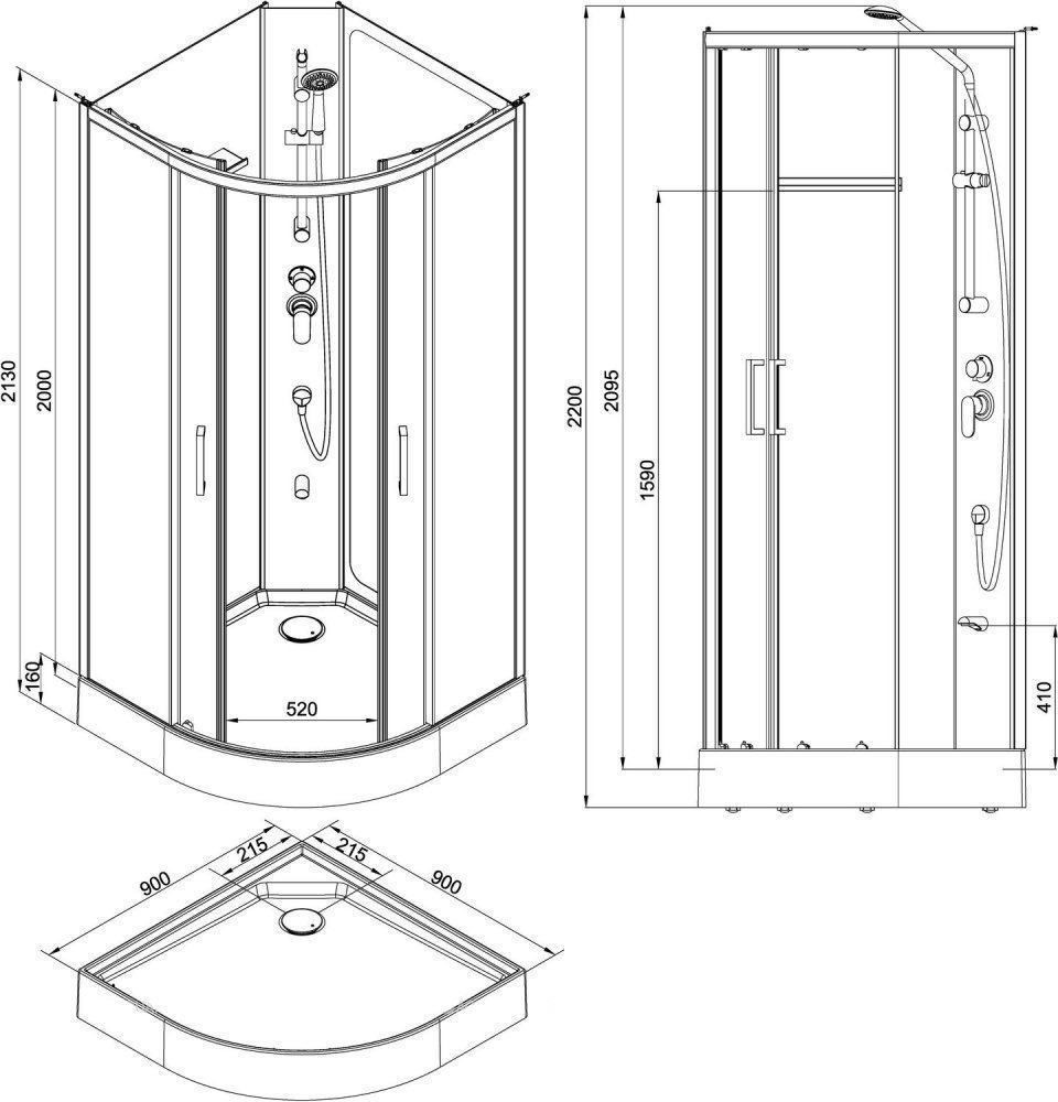 Душевое кабина Aquanet Passion R 2.0 с низким поддоном, размер 900х900х2200 мм, профиль хром, стекло прозрачное, безсиликоновая сборка.