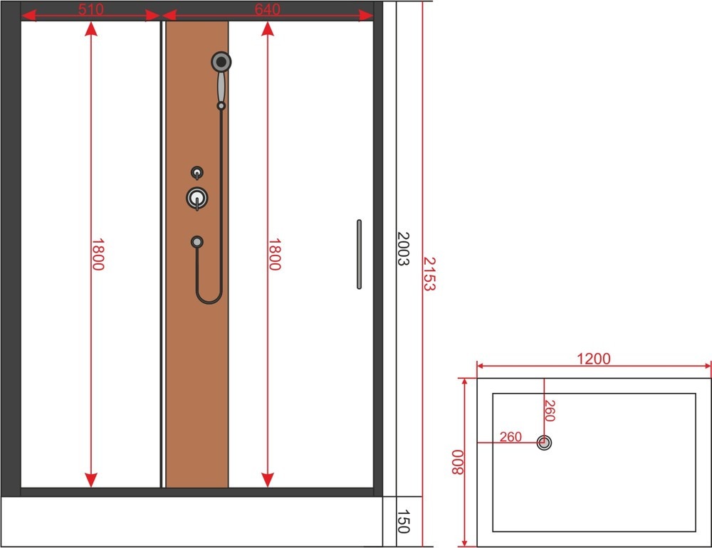 Душевое кабина EvaGold 120x80 см EG210021, чёрный/прозрачное