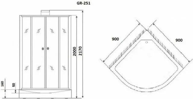Душевое кабина Grossman Elegans 90x90 см GR251, чёрный/прозрачное