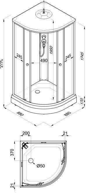 Душевая кабина Triton Экстра А с низким поддоном и сифоном в комплекте, размер 880х880х2175 мм, профиль белый, стекло прозрачное, вход 490 мм.