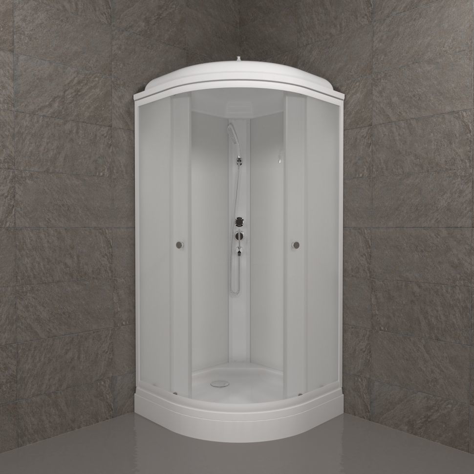 Душевая кабина Triton Вельвет А с низким поддоном и сифоном в комплекте, размер 900х900х2175 мм, профиль белый, стекло матовое, вход 570 мм.