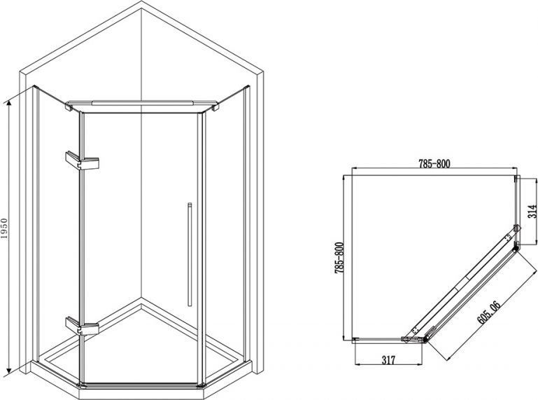 Душевое ограждение Abber Ewiges Wasser AG05080 800х800х1950 мм, профиль - хром, стекло - прозрачное 6 мм. Поддон приобретается отдельно.