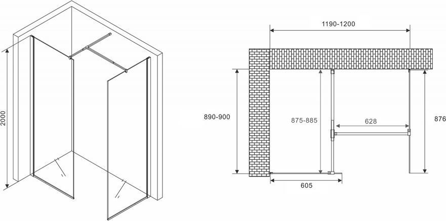 Душевое ограждение Abber Immer Offen AG67129B 1200х900х2000 мм, профиль - черный, стекло - прозрачное 6 мм. Поддон приобретается отдельно.