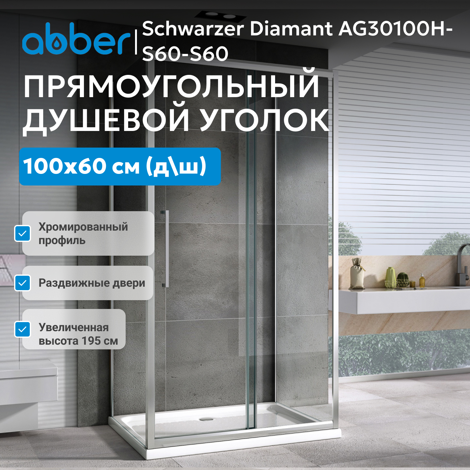 Душевое ограждение Abber Schwarzer Diamant 100х60 см AG30100H-S60-S60, хром/прозрачное