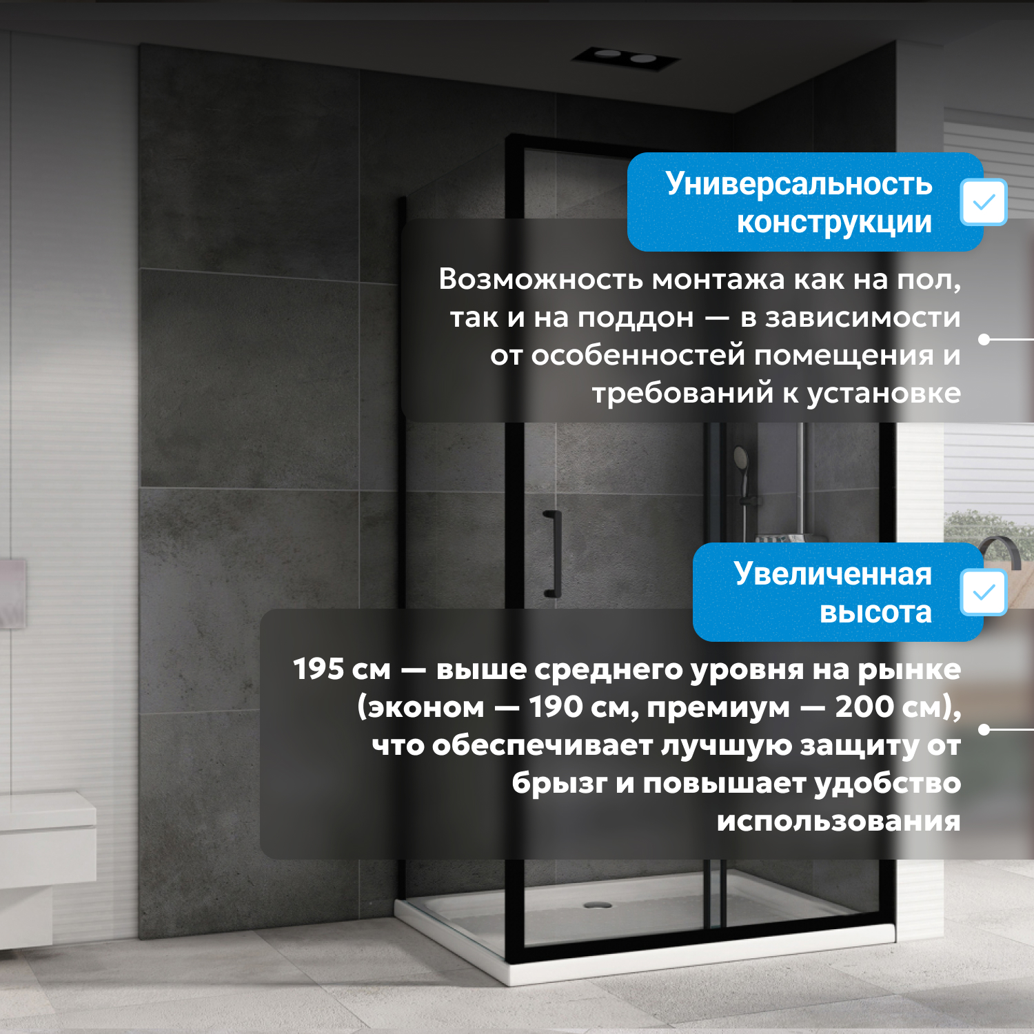 Душевое ограждение Abber Schwarzer Diamant 100х90 см AG30100B5-S90B5, чёрный/прозрачное