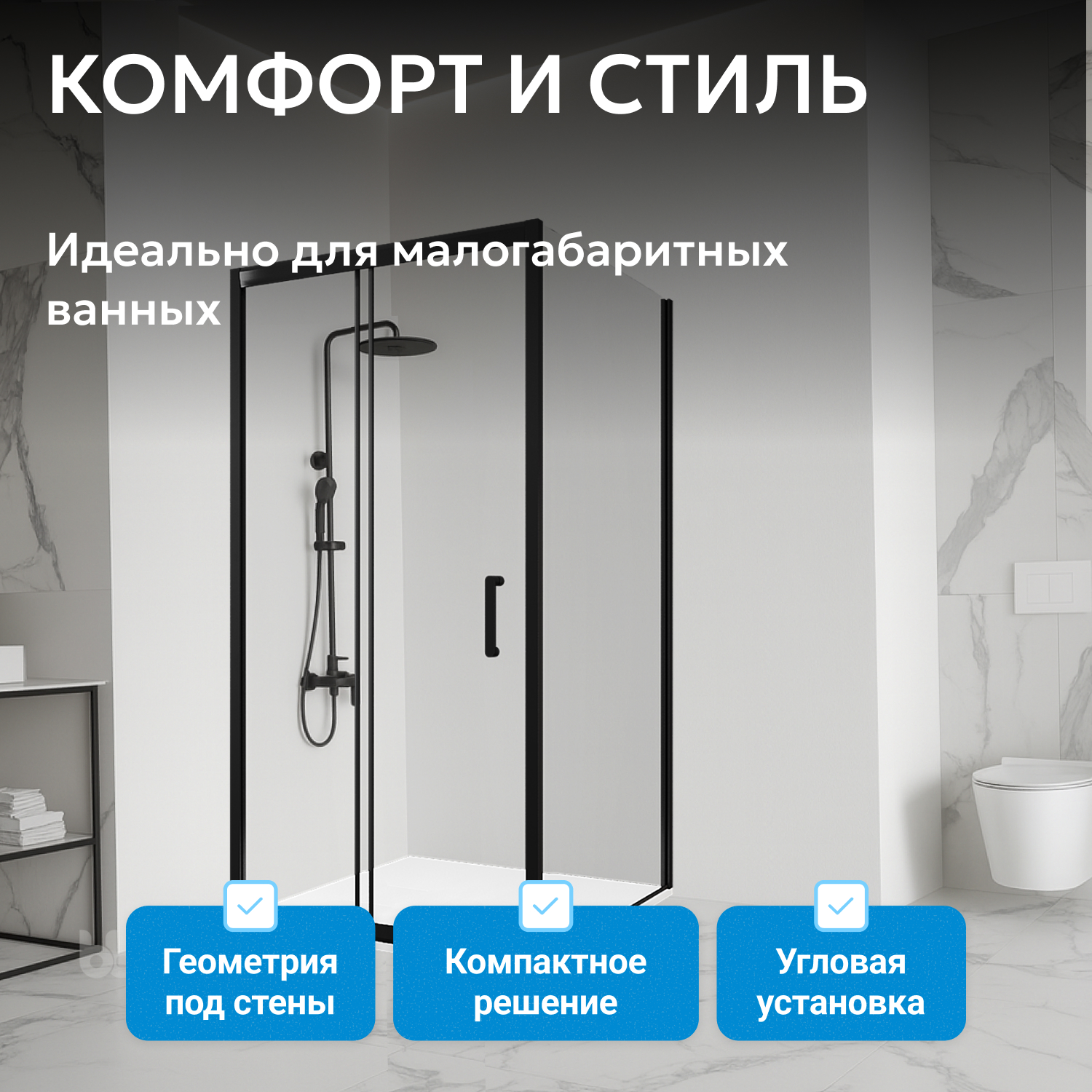 Душевое ограждение Abber Schwarzer Diamant 110х90 см AG30110B5-S90B5, чёрный/прозрачное