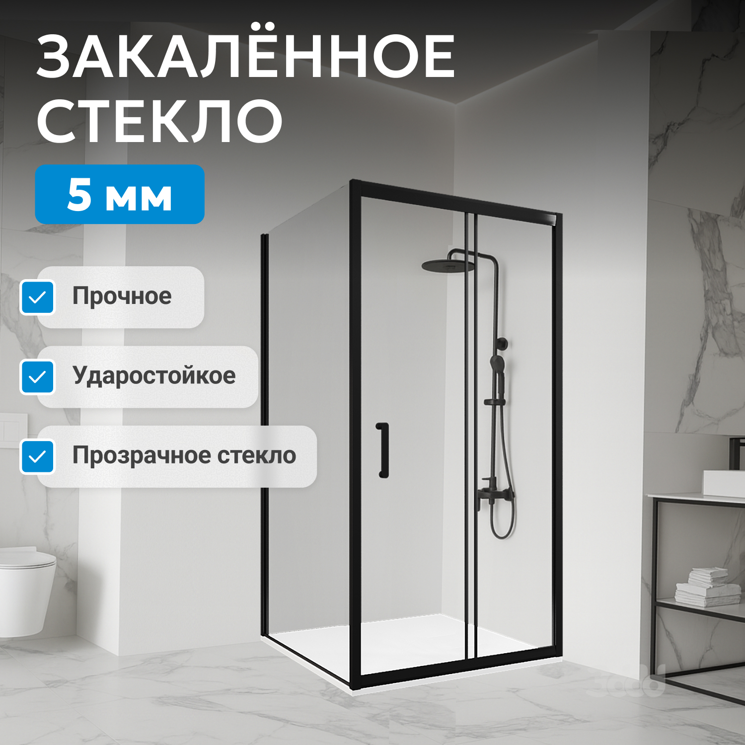 Душевое ограждение Abber Schwarzer Diamant AG30110B5-S90B5 1090-1100х890-900х1900, профиль - чёрный, стекло - прозрачное 5 мм. Ширина входа 444 мм. Дверь 110 см, душевая стенка 90 см. Поддон приобретается отдельно.