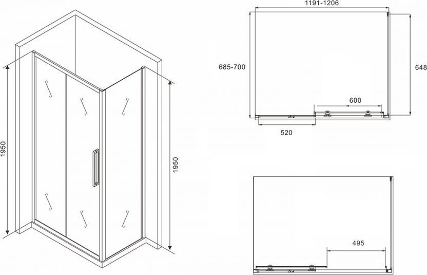 Душевое ограждение Abber Schwarzer Diamant AG30120BH-S70B 1200х700х1950 мм, профиль - черный, стекло - прозрачное 6 мм. Поддон приобретается отдельно. Дверь 120 см, душевая стенка 70 см.