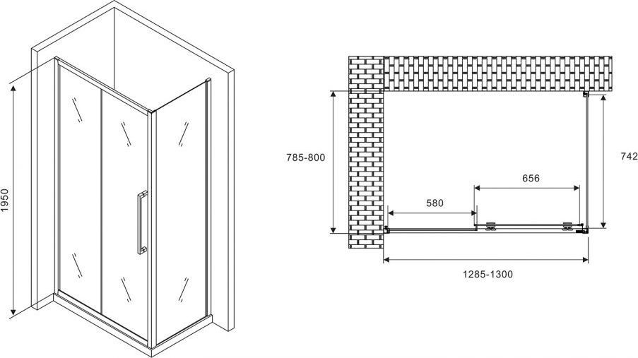 Душевое ограждение Abber Schwarzer Diamant AG30130H-S80 1300х800х1950 мм, профиль - хром, стекло - прозрачное 6 мм. Поддон приобретается отдельно. Дверь 130 см, душевая стенка 80 см.