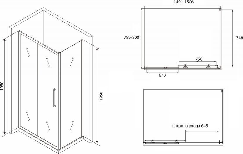 - Габариты с регулировками: (1491-1506)х(785-800) мм
