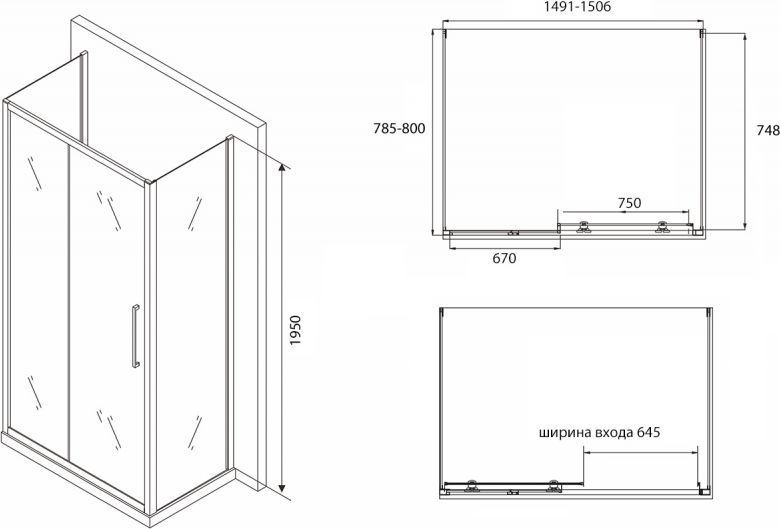 Характеристики Душевое ограждение Abber (AG30150BH-S80B-S80B)