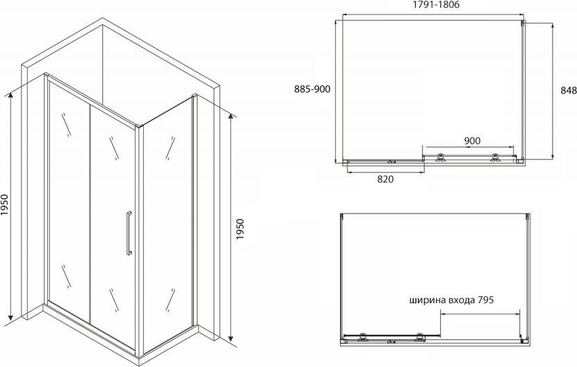 - Габариты с регулировками: (1791-1806)х(885-900) мм