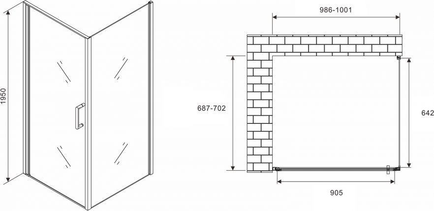 Душевое ограждение Abber Sonnenstrand AG04100B-S70B 1000х700х1950 мм, профиль - черный, стекло - прозрачное 6 мм. Поддон приобретается отдельно. Дверь 100 см, душевая стенка 70 см.