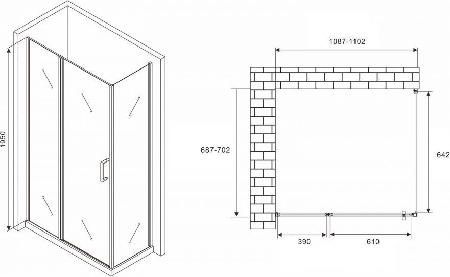 Душевое ограждение Abber Sonnenstrand AG04110BS-S70B 1100х700х1950 мм, профиль - черный, стекло - прозрачное 6 мм. Поддон приобретается отдельно. Дверь 110 см, душевая стенка 70 см.