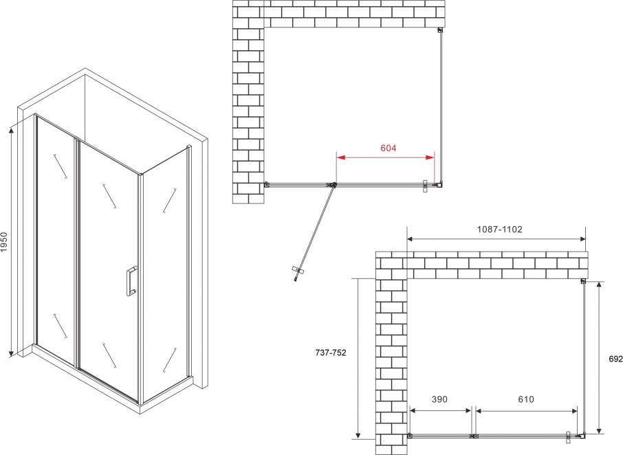 Душевое ограждение Abber Sonnenstrand AG04110S-S75 1100х750х1950 мм, профиль - хром, стекло - прозрачное 6 мм. Поддон приобретается отдельно. Ширина входа 604 мм, габариты с регулировками: (1082-1102)х(737-752) мм.