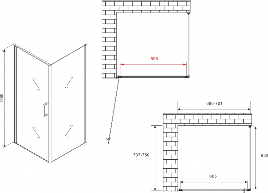 Душевое ограждение Abber Sonnenstrand AG04070-S75 700х750х1950 мм, профиль - хром, стекло - прозрачное 6 мм. Поддон приобретается отдельно. Ширина входа 595 мм, габариты с регулировками: (686-701)х(737-750) мм.