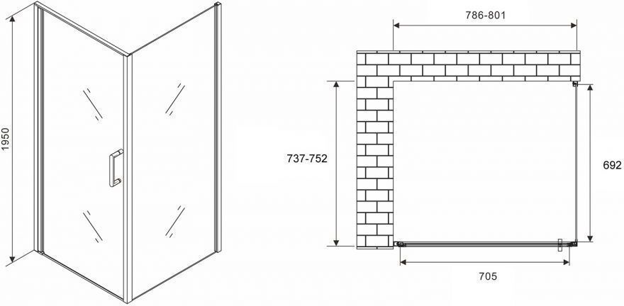 Душевое ограждение Abber Sonnenstrand, размер 800х750х1950 мм, профиль хром, стекло матовое 6 мм. Габариты регулировки (786-801)х(737-752)х1950 мм. Поддон приобретается отдельно. Дверь 80 см, душевая стенка 75 см.