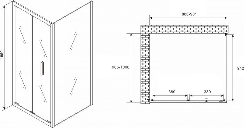 Душевое ограждение Abber Sonnenstrand AG07090-S100 900х1000х1950 мм, профиль - хром, стекло - прозрачное 6 мм. Поддон приобретается отдельно. Дверь 90 см, душевая стенка 100 см.