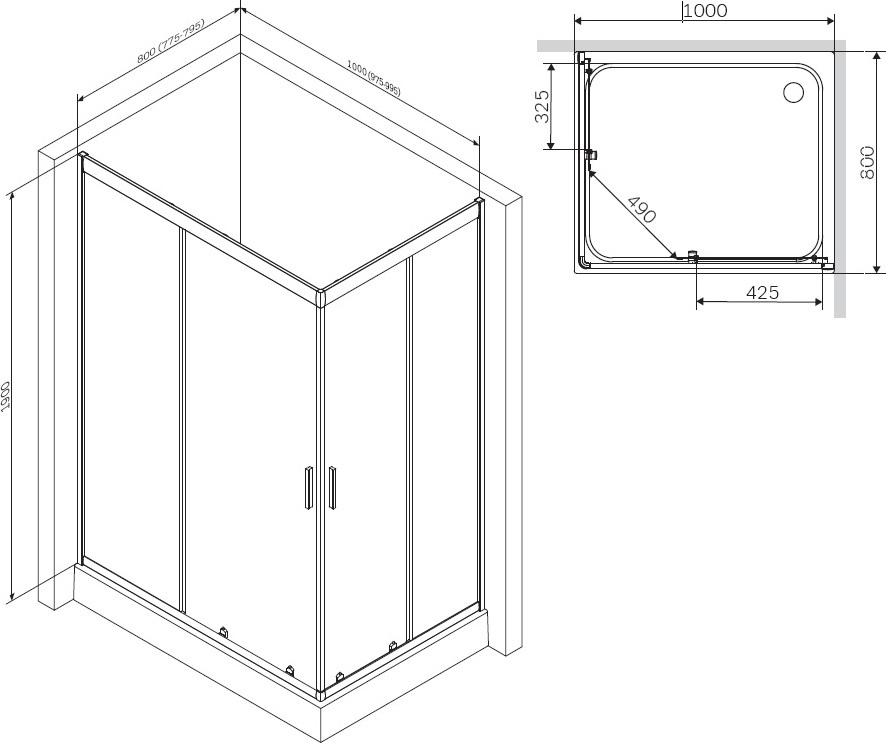 Душевое ограждение Am.Pm Gem 100х80 см W90G-404-100280-MT, серебро/прозрачное