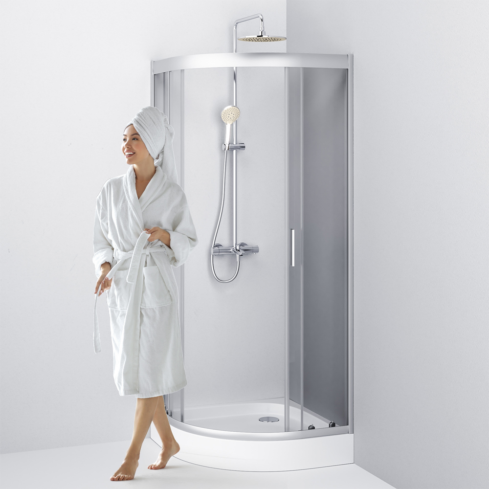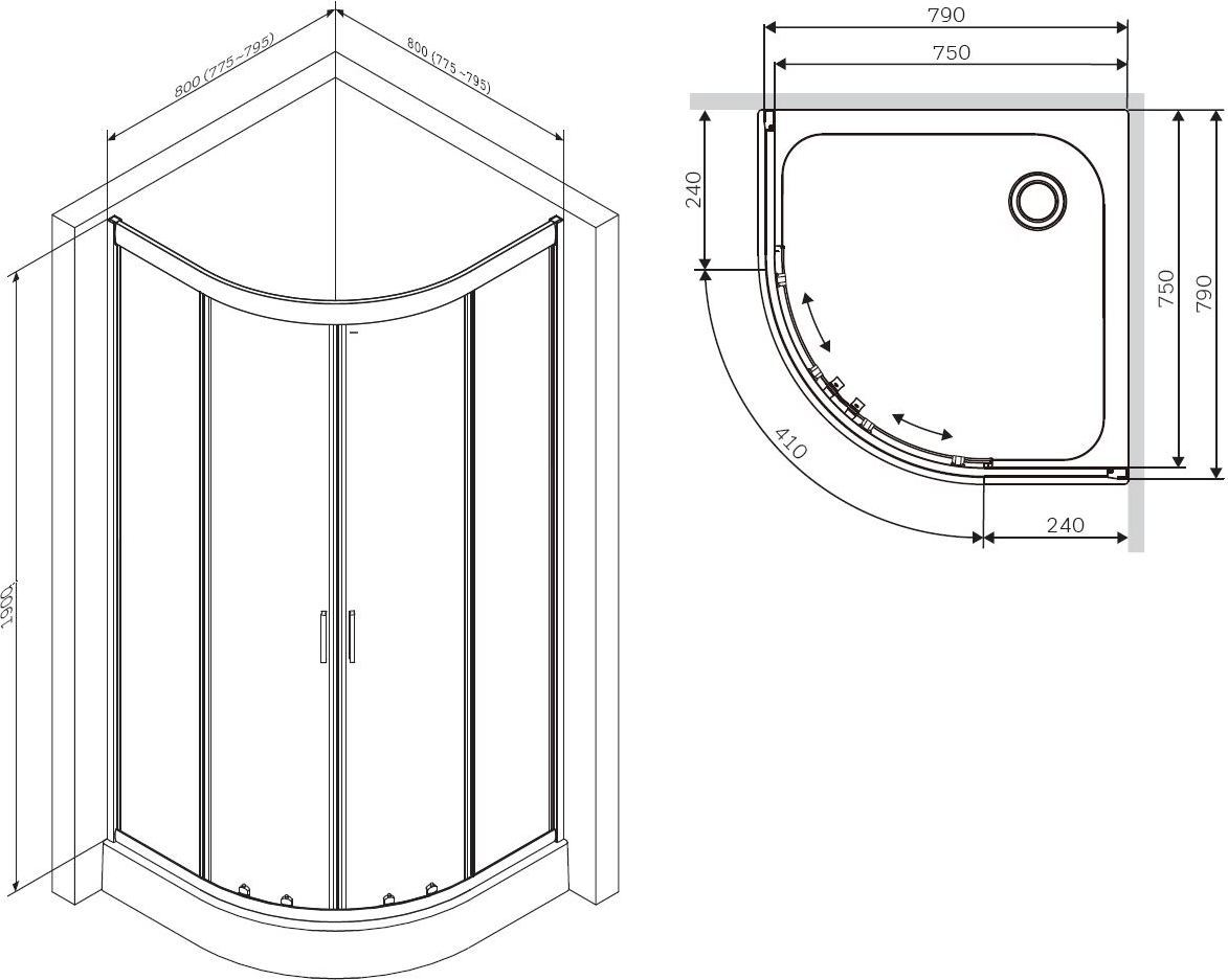 Система крепления профилей QuickFix - простой и быстрый монтаж душевого ограждения. Надежные хромированные двойные ролики – не менее 150 000 открываний. Прозрачное закаленное стекло толщиной 5 мм. Ручка из алюминия. Высота ограждения без поддона 1900 мм. Совместимо с поддонами - артикулы W88T-205-080W W90T-401-080W. Приобретаются отдельно.