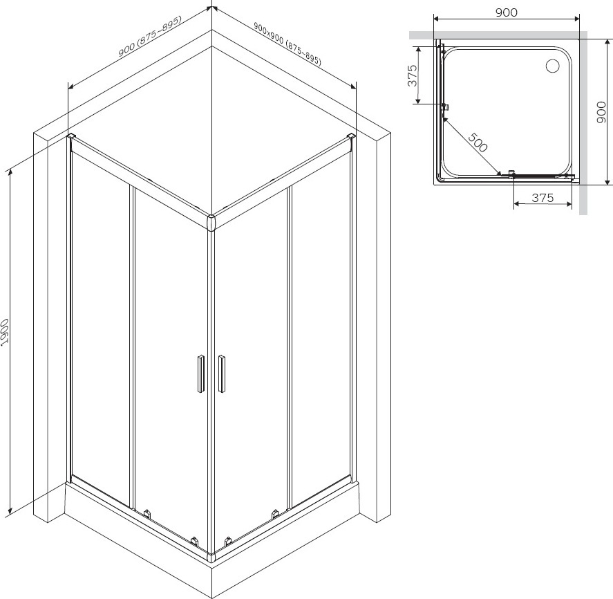 Душевое ограждение Am.Pm Gem 90х90 см W90G-403-090MT, серебро/прозрачное