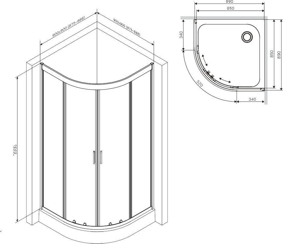 Характеристики Душевое ограждение AM.PM (W90G-401-090BT)