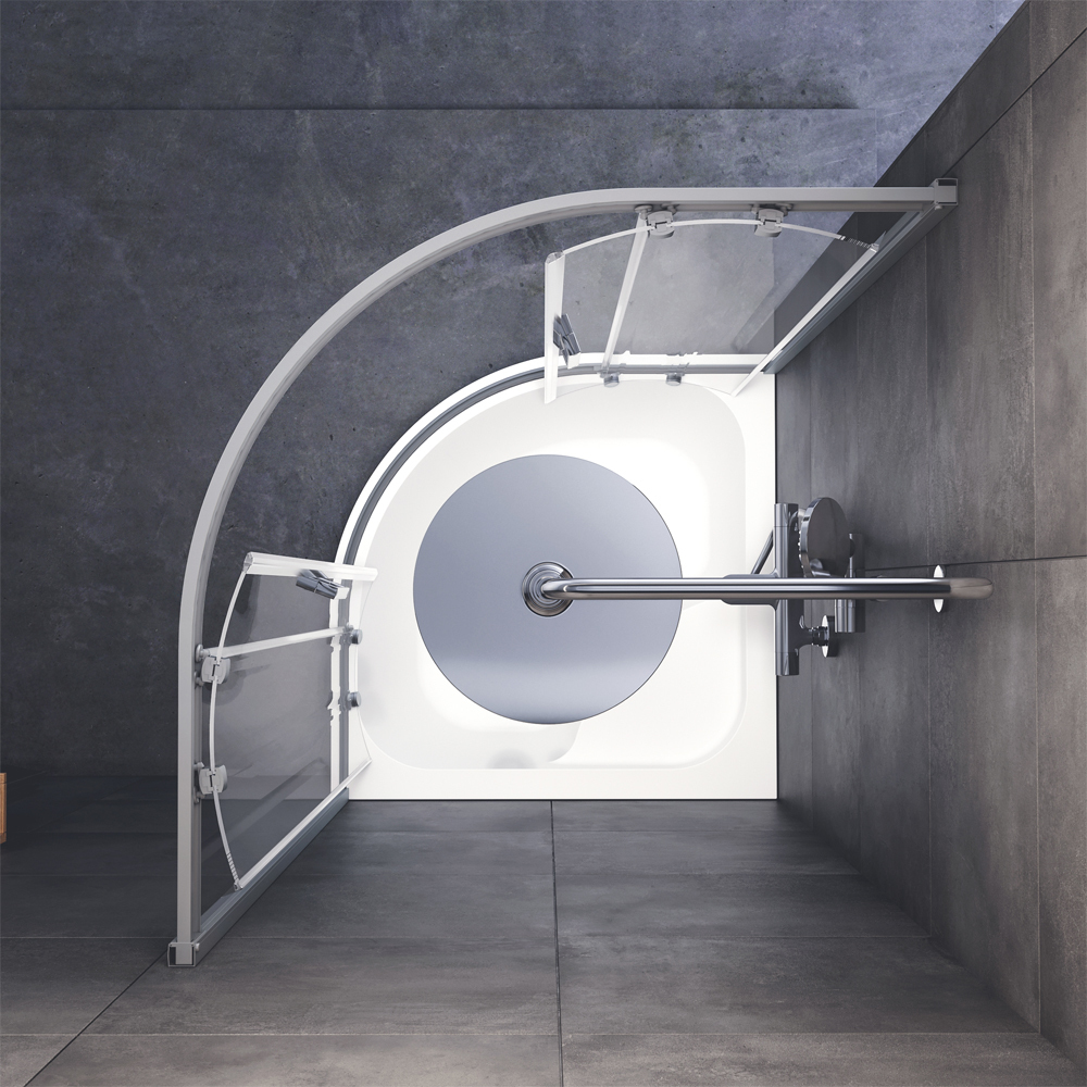 Cистема крепления профилей QuickFix. Простой и быстрый монтаж душевого ограждения. Надежные хромированные двойные ролики – Не менее 150 000 открываний. Прозрачное закаленное стекло толщиной 5 мм. Ручка из анодированного алюминия. Поддон приобретаются отдельно - артикул W90T-401A090W.
