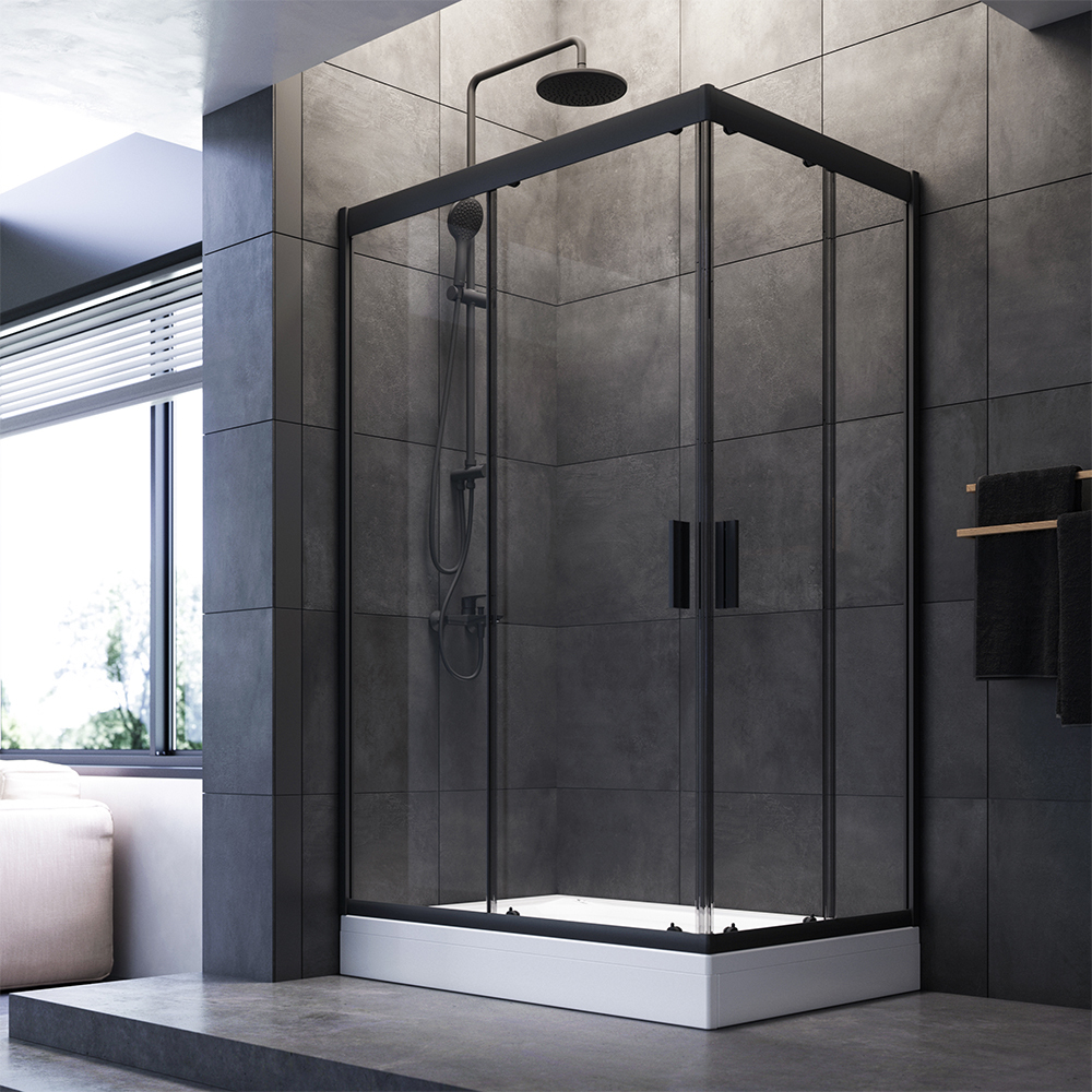 Душевое ограждение Am.Pm Gem Twin Slide 120x80 см W90G-404-120280-BT, черный/прозрачное