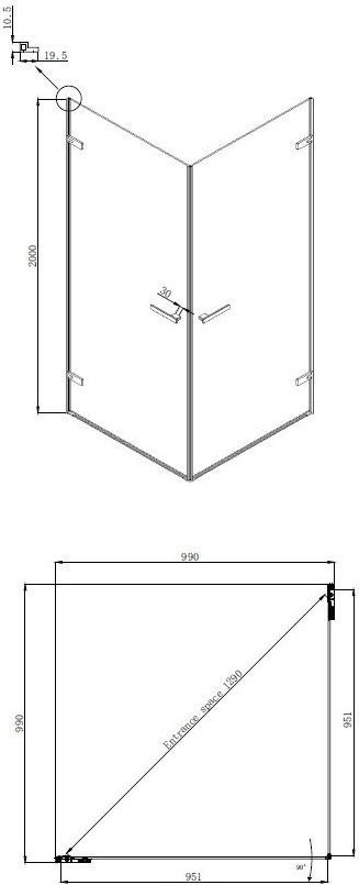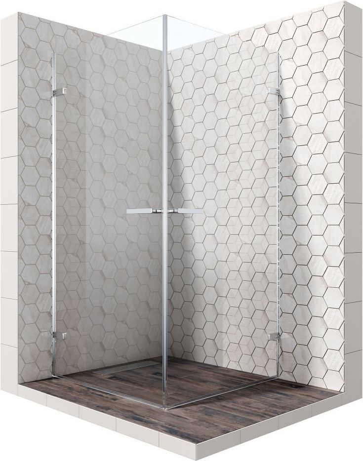 Душевое ограждение Ambassador Abner, размер 1000х1000х2000 мм, профиль хром, стекло прозрачное 8 мм, ширина входа 1290 мм. Поддон приобретается отдельно.