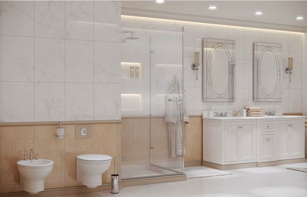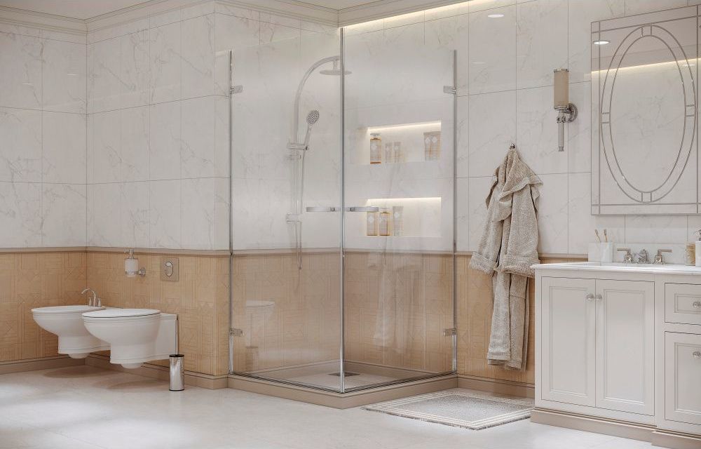 - Душевое ограждение устанавливается в облицованный керамической плиткой угол ванной комнаты.