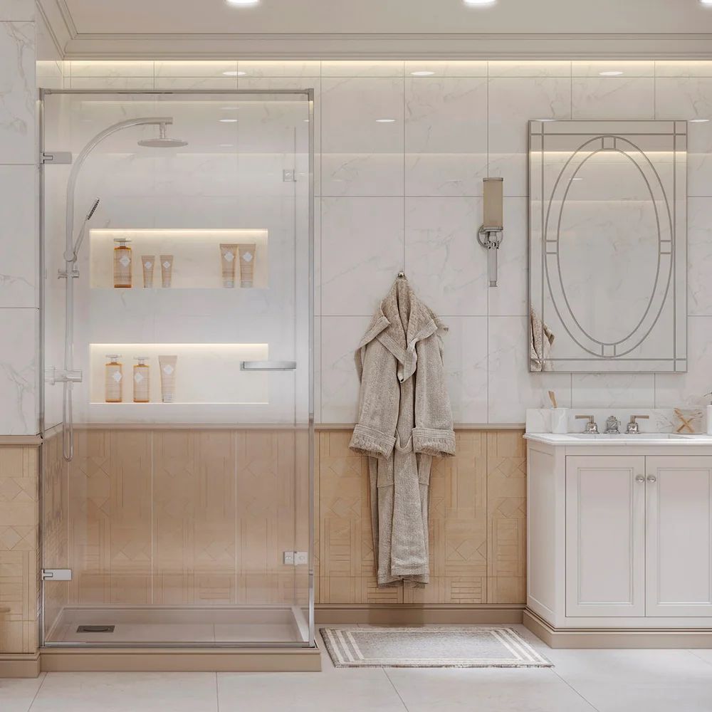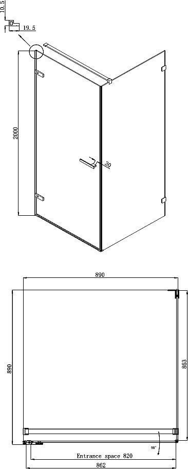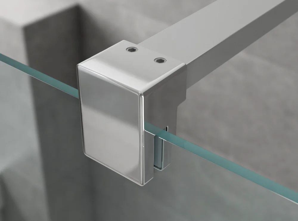 Душевое ограждение Ambassador Abner с держателем, размер 900х900х2000 мм, профиль хром, стекло прозрачное 8 мм, ширина входа 820 мм. Поддон приобретается отдельно.