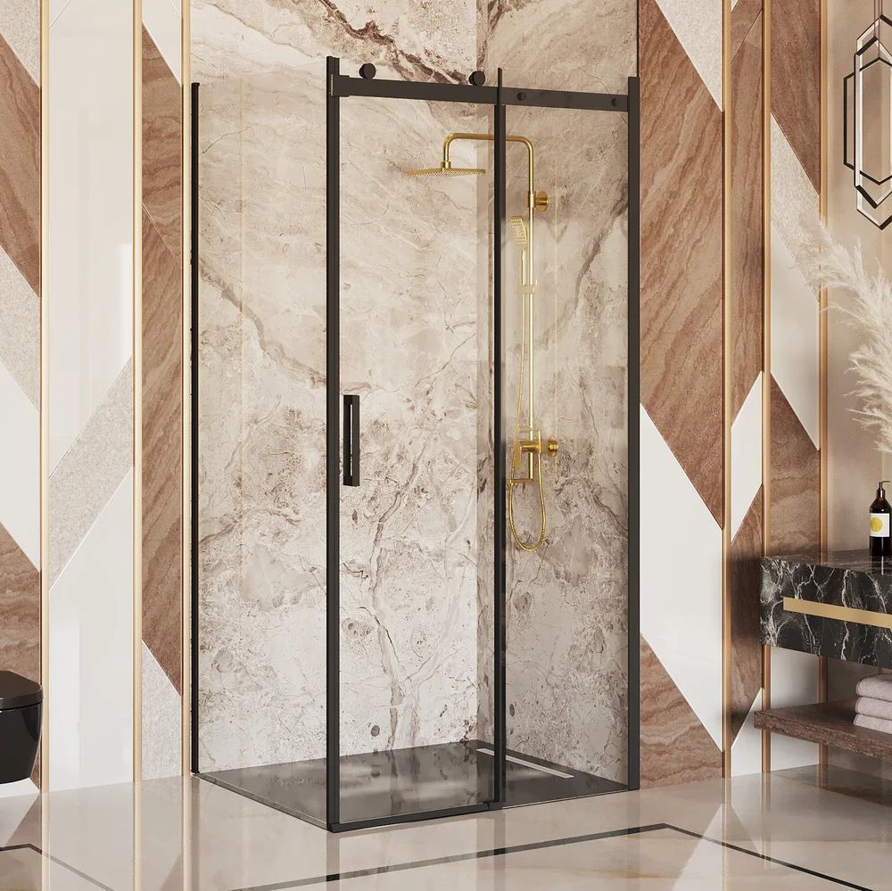 Душевое ограждение Ambassador Benefit, размер 1200х1200х2000 мм, профиль чёрный, стекло прозрачное 8 мм. Габариты регулировки (1180-1200)х(1180-1200)х2000 мм, ширина входа 470 мм. Поддон приобретается отдельно.