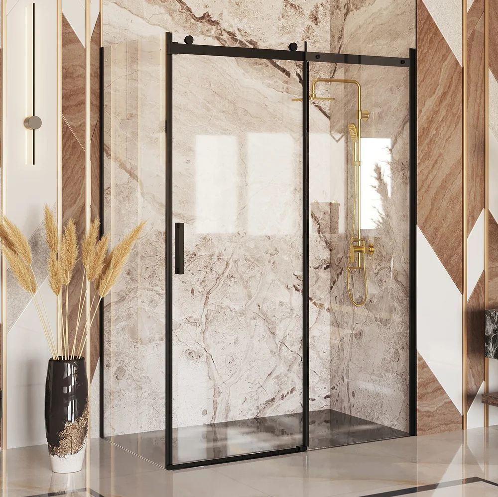 Душевое ограждение Ambassador Benefit, размер 1500х1200х2000 мм, профиль чёрный, стекло прозрачное 8 мм. Габариты регулировки (1480-1500)х(1180-1200)х2000 мм, ширина входа 620 мм. Поддон приобретается отдельно. Дверь 150 см, душевая стенка 120 см.