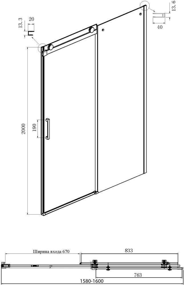 - Дверь: одна раздвижная дверь, одно неподвижное стекло