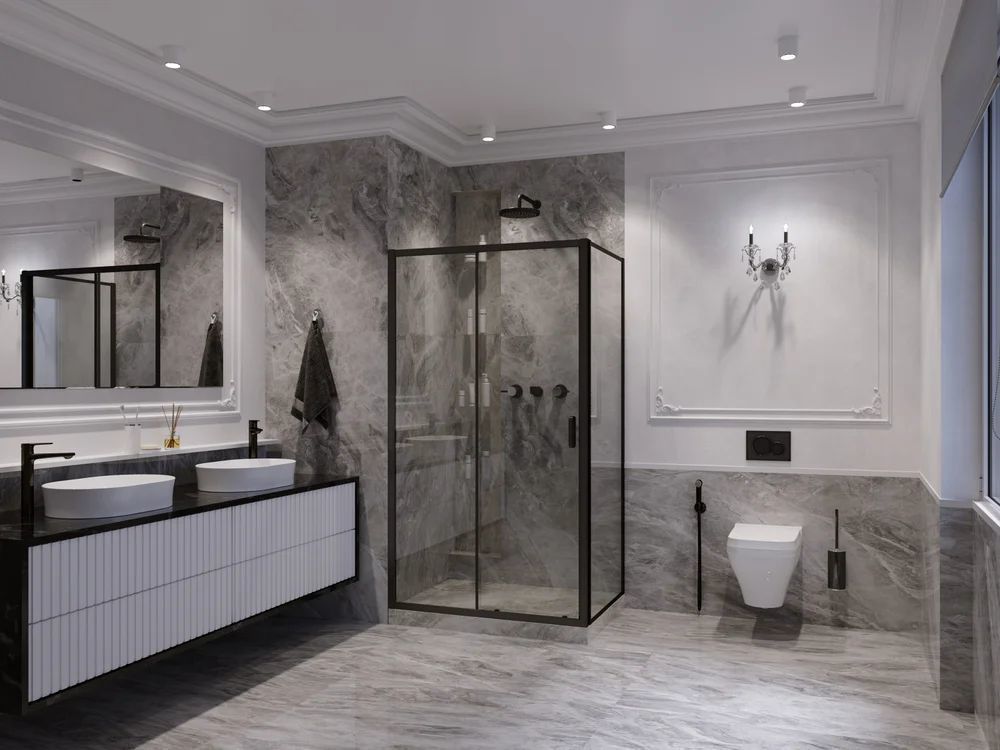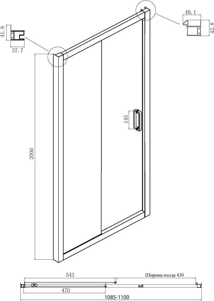 Душевое ограждение Ambassador Forsa, размер 1100х1200х2000 мм, профиль чёрный, стекло прозрачное 6 мм. Габариты регулировки (1085-1100)х(1185-1200)х2000 мм, ширина входа 430 мм. Поддон приобретается отдельно. Дверь 110 см, душевая стенка 120 см.